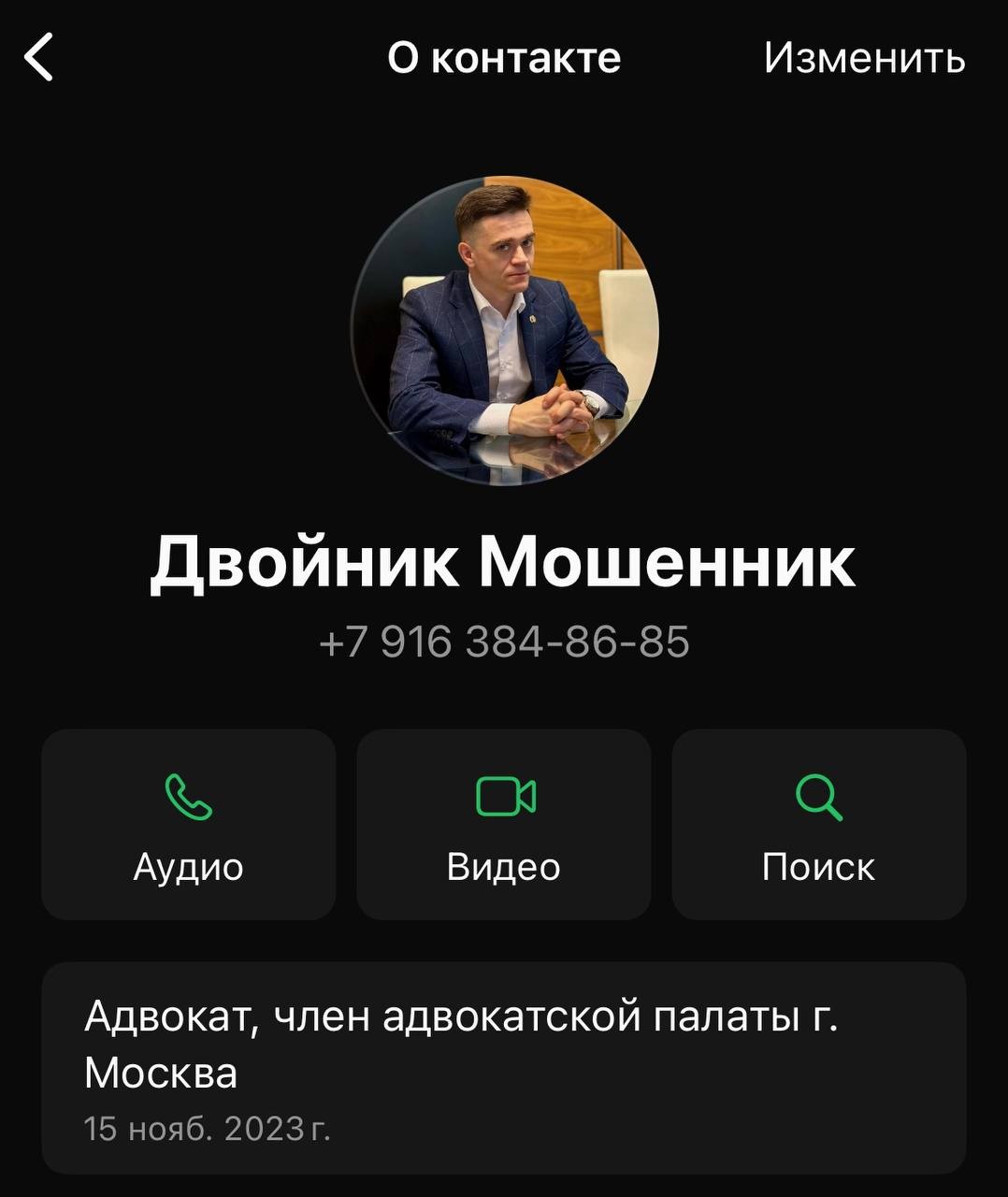 Будьте внимательны, от моего имени и с моей фотографией работает мошенник. Предлагает провести дело, обещает миллионы. Не переводите деньги без встречи.